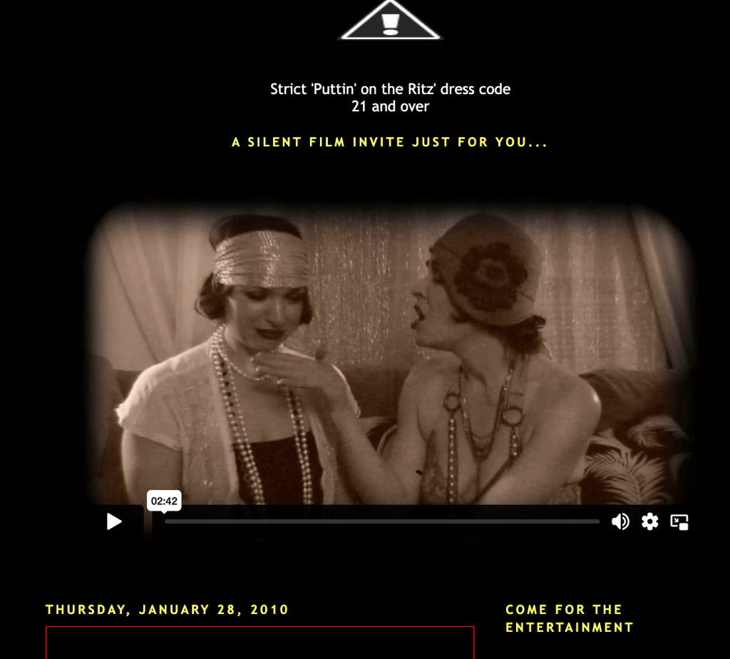Screenshot from promotional blogpost for 2010 party, Beautiful and Damned